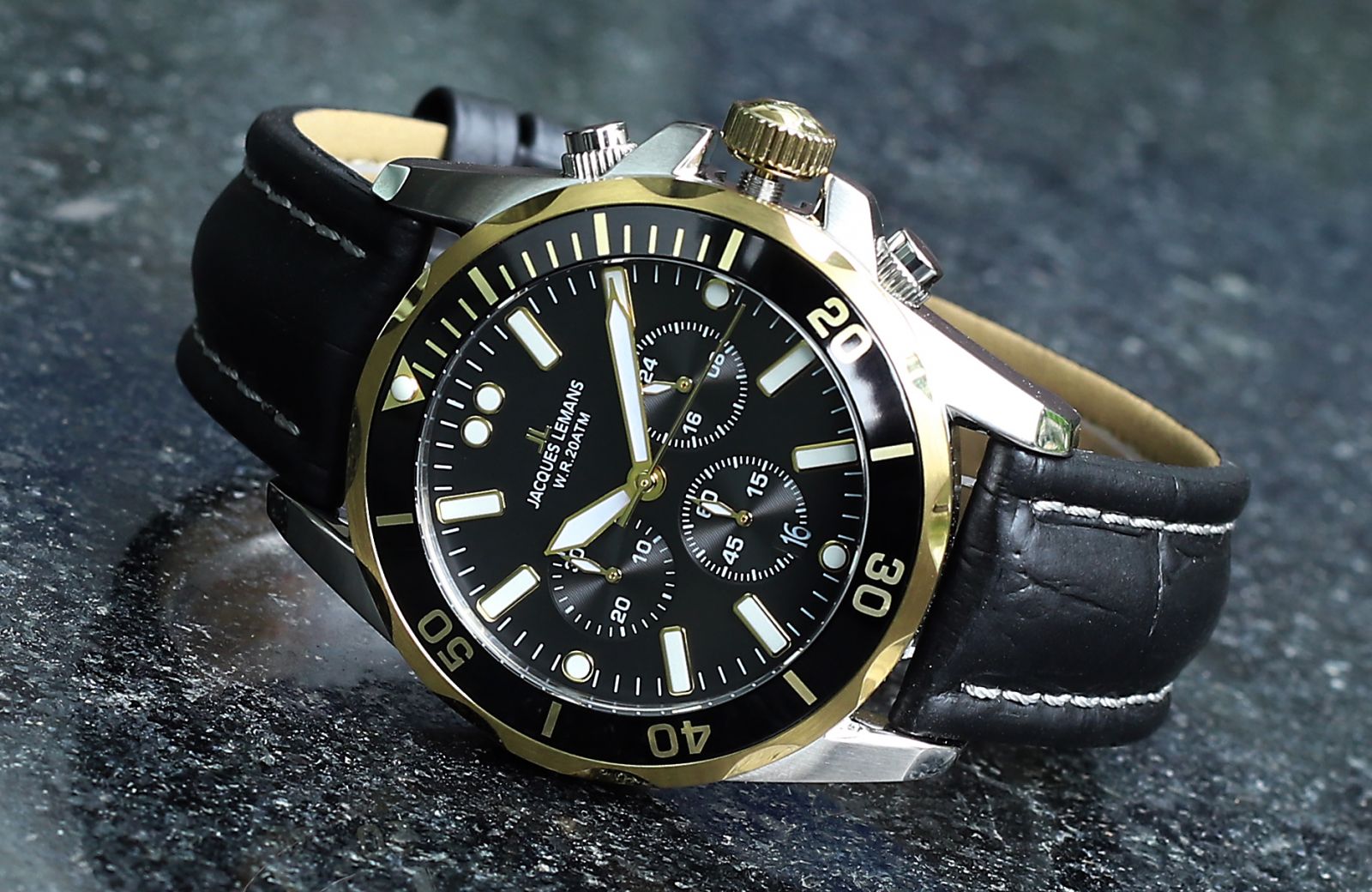 Mẫu cuối cùng trong Top 3 tiếp tục thuộc về thương hiệu Jacques Lemans-một thương hiệu sở hữu một danh sách lớn những mẫu Chrongraph.