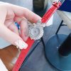 Thiết kế nơ sang trọng như một món trang sức trên cổ tay. Mặt tròn nhỏ ôm tay, viền đính đá lấp lánh; dây da vân êm ái đổi màu linh hoạt (đỏ/đen/xanh lá). Funmei F1400 Jewel Bow Set – Đồng hồ nơ đính đá, dây da nhiều màu ,Bộ máy Quartz Nhật Miyota bền bỉ – xinh đẹp mỗi ngày, quà tặng tinh tế.
